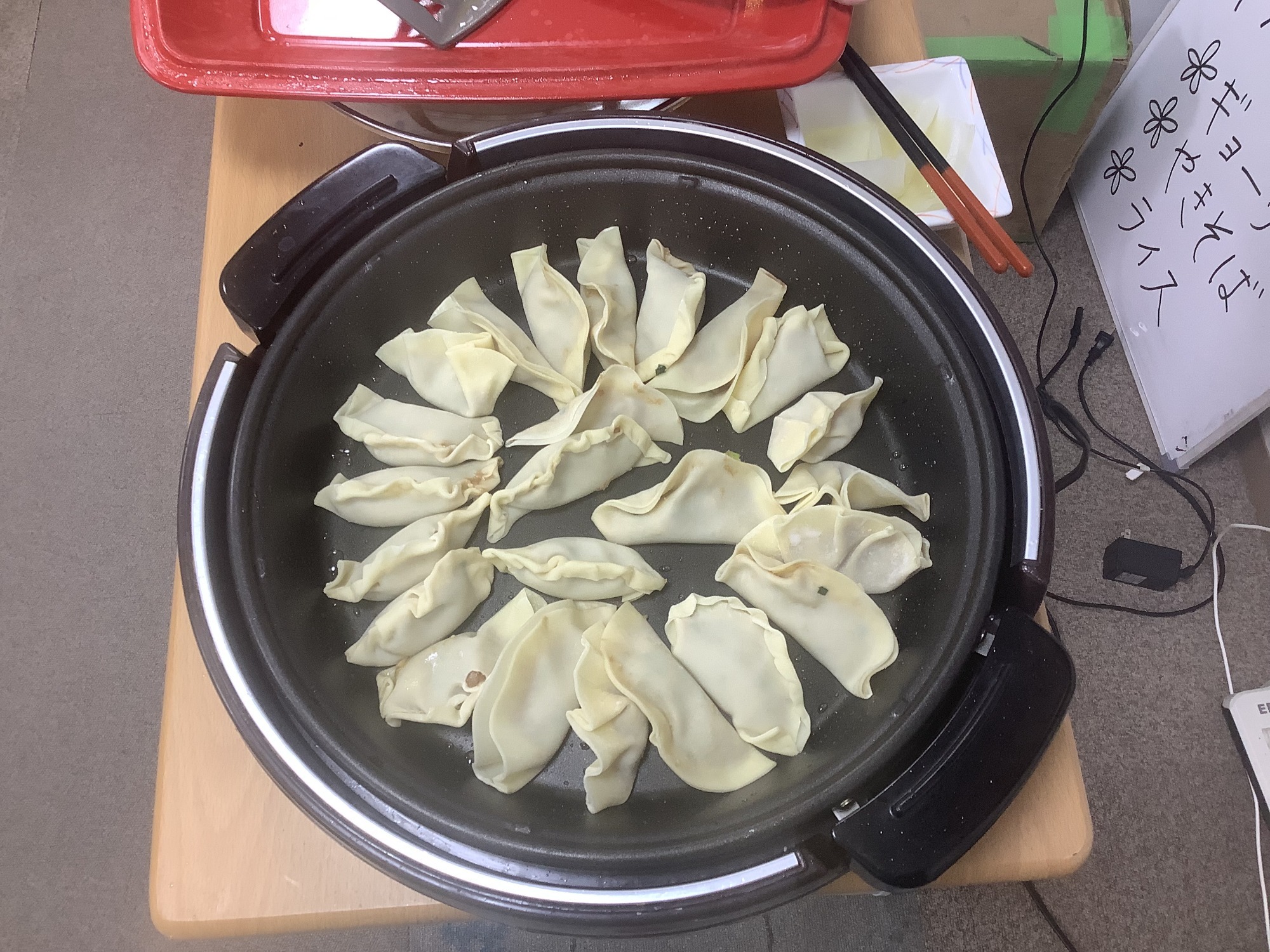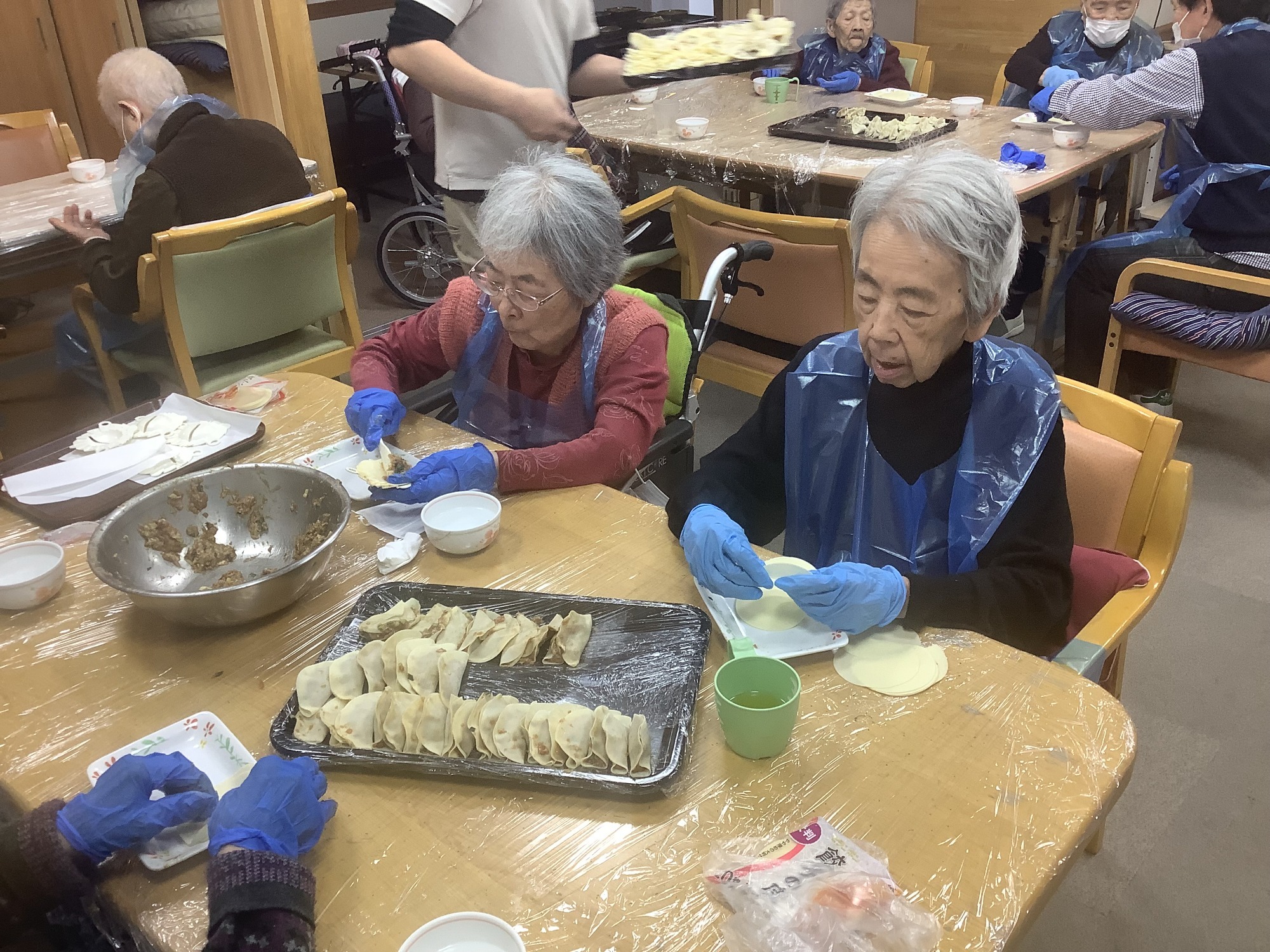 恒例となった餃子作り。器用にひだを作りしっかりと餡を包んでくださいました。