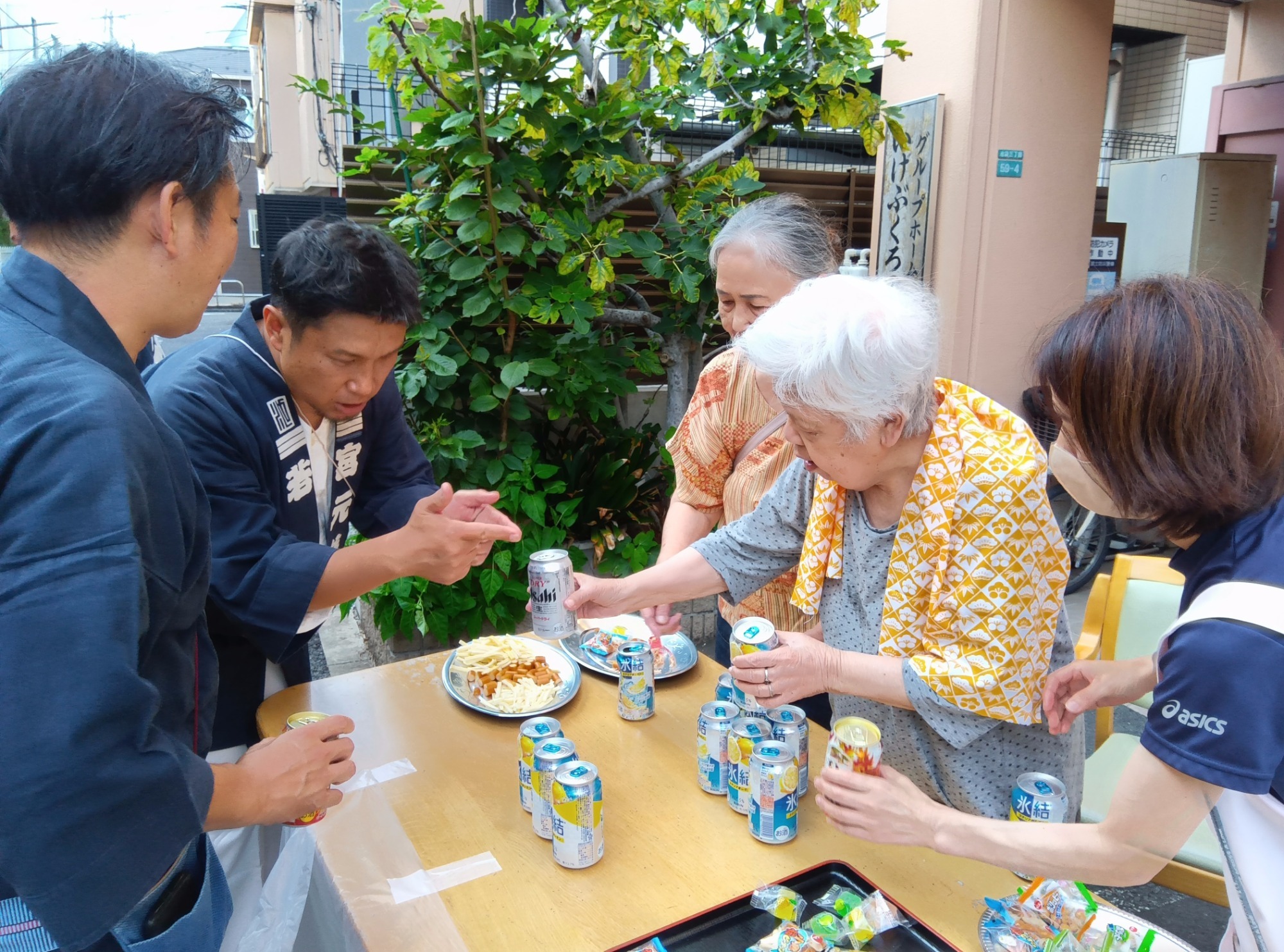 ご利用者さんから町内会の皆さんにおもてなし。ご利用者も積極的にお手伝いして下さり、いい汗かきました。